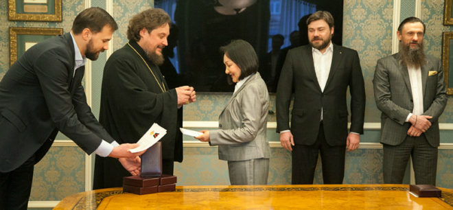 Таким образом была отмечена работа фонда по организации масштабного принесения мощей князя Владимира в города России и Белоруссии в 2015 году.
