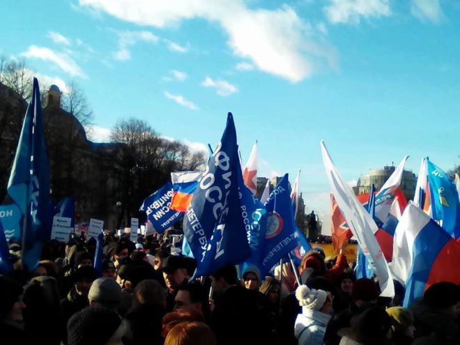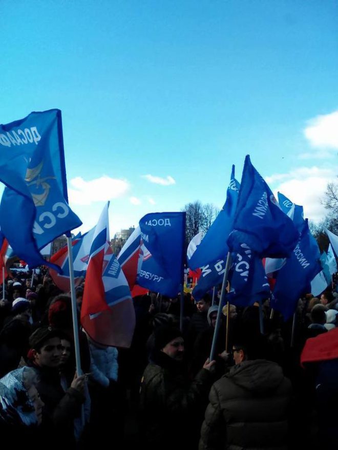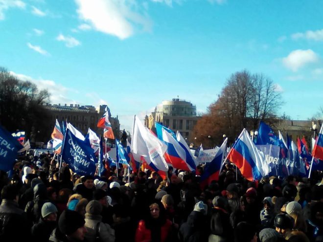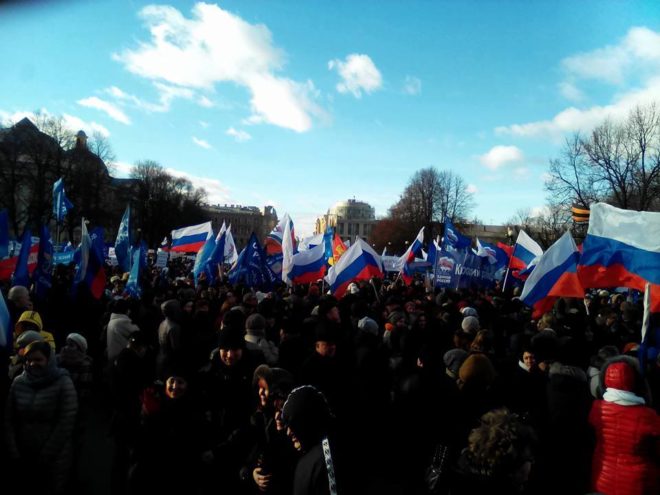 18 марта на Пионерской площади Санкт-Петербурга по инициативе общественных организаций состоялся праздничный митинг-концерт «Мы вместе», посвященный историческому событию – второй годовщине вхождения в Российскую Федерацию Республики Крым и города-героя Севастополь.