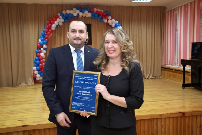 За большой вклад в педагогическую и военно-патриотическую деятельность, вклад в воспитание молодого поколения благодарности за подписью председателя Комитета Госдумы по труду, социальной политике и делам ветеранов Ольги Баталиной были торжественно вручены директору школы села Шумейка Елене Плотаревой и председателю Общественного совета при минобразования области Сергею Саратовскому.