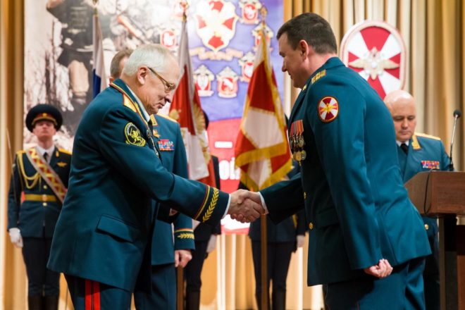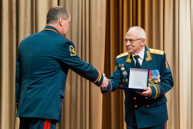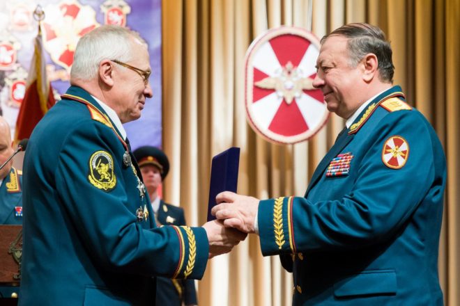 Председатель совета ветеранов ВВ МВД России генерал-лейтенант в отставке Петр Ровенский также вручил ряду офицеров внутренних войск награды организации «ОФИЦЕРЫ РОССИИ».