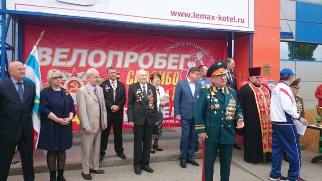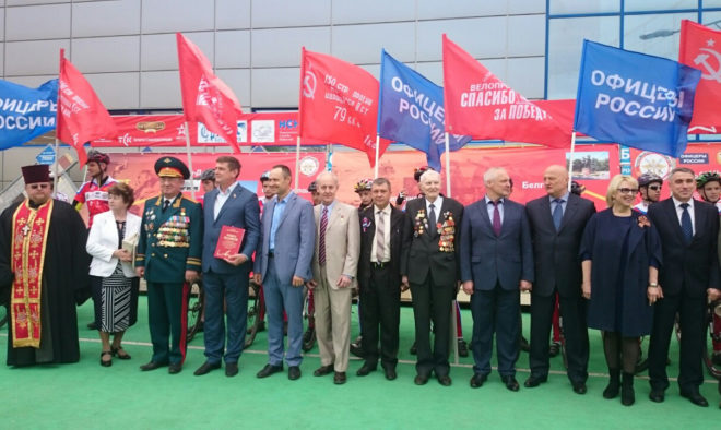5 мая в Таганроге стартовал уникальный велопробег «Спасибо за Победу – Не забывается такое никогда!» Сорок молодых спортсменов пронесут Знамя Победы по городам-героям России и Белоруссии. Участники проедут на велосипедах 7,5 тыс. километров за 39 дней и финишируют в Ростовской области в день России – 12 июня. По пути следования велопробег будут встречать представители региональных отделений «ОФИЦЕРОВ РОССИИ».