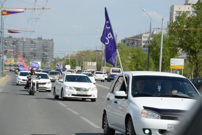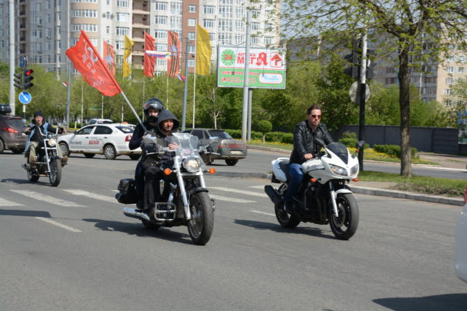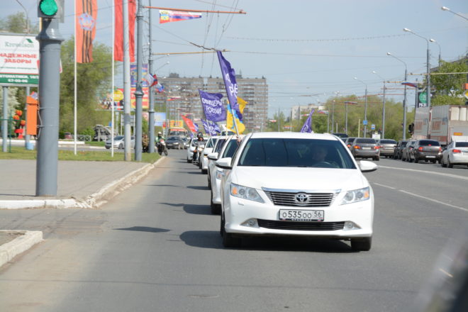 Владельцы белых автомобилей, представители байкерских клубов, а также владельцы раритетных автомобилей и мотоциклов периода Великой Отечественной войны единой праздничной колонной проехали по центральным улицам Оренбурга.