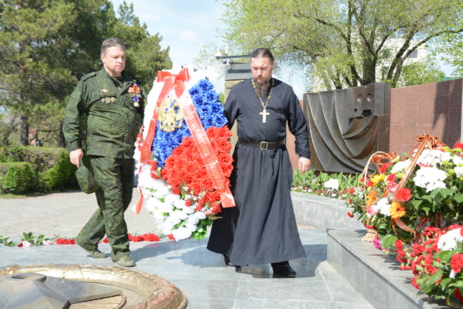 Руководитель исполкома регионального отделения «ОФИЦЕРЫ РОССИИ», депутат Оренбургского городского Совета Алексей Чистяков и член исполкома, председатель отдела по церковной благотворительности и социальному служению Оренбургской епархии Русской Православной Церкви Московского Патриархата протоиерей Александр Азаренков возложили венки и цветы в выставочном комплексе «Салют, Победа!», мемориальном комплексе «Вечный огонь» и почтили память погибших в Великой Отечественной войне минутой молчания.