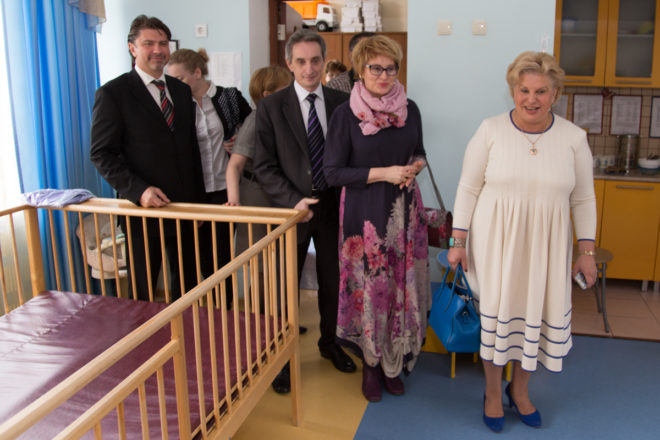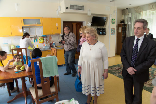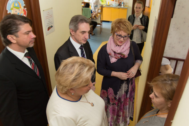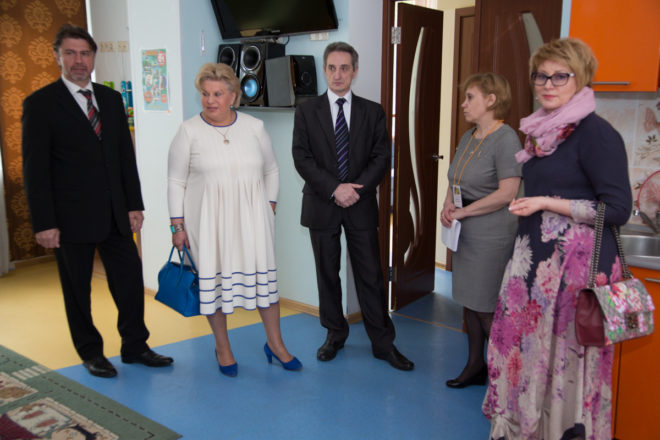 18 мая делегация в составе Уполномоченного по правам человека в городе Москве Татьяны Потяевой, заместителя руководителя столичного Департамента труда и соцзащиты Татьяны Барсуковой, директора Кризисного центра помощи женщинам и детям Натальи Завьяловой, руководителя Центра социальной и правовой защиты «ОФИЦЕРОВ РОССИИ», а также членов Попечительского совета посетила Специализированный дом ребенка в Москве.