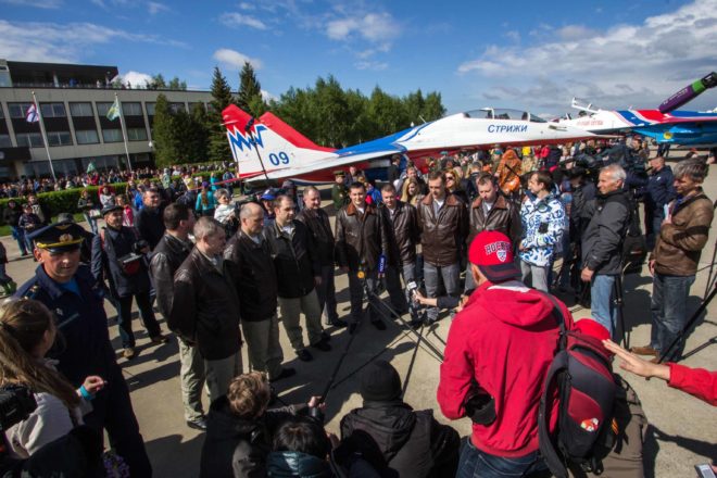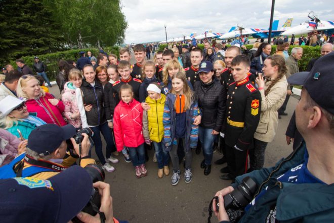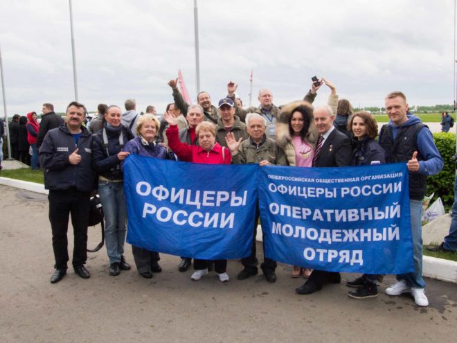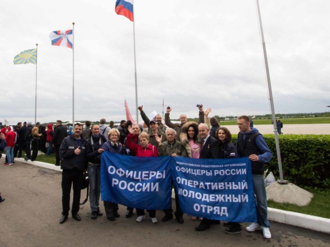 По приглашению руководства пилотажных групп на авиационный праздник приехали около 100 членов организации «ОФИЦЕРЫ РОССИИ». Среди почетных гостей были: председатель Совета мужества и отваги, Герой России, космический испытатель Сергей Нефедов; первый вице-президент Российского общества дружбы с Кубой, член Президиума Михаил Макарук; член президиума регионального отделения «ОФИЦЕРОВ РОССИИ» Московской области, Герой России, летчик-испытатель Анатолий Кнышов; руководитель Центра социальных проектов Сабина Цветкова; заместитель руководителя Центрального Исполкома организации Валерий Степанов, а также представители региональных отделений Москвы и Московской области и инспекторы Оперативного молодежного отряда.
