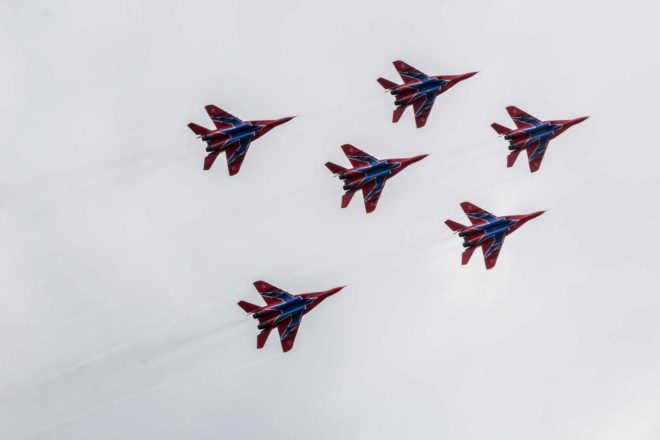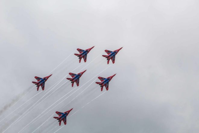 21 мая в подмосковной Кубинке состоялось грандиозное авиашоу, посвященное 25-летию пилотажных групп «Русские витязи» и «Стрижи».