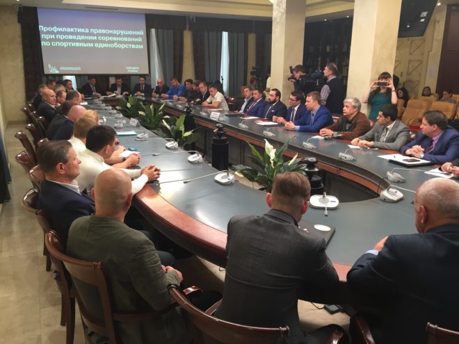 По итогам заседания принято решение сформировать рабочую группу для разработки рекомендаций по профилактике правонарушений организаторам спортивных соревнований. Предлагается два варианта рекомендаций – первая часть с точки зрения действующего законодательства, вторая – опыт в данной сфере известных тренеров, спортсменов, руководителей федераций спортивных единоборств.