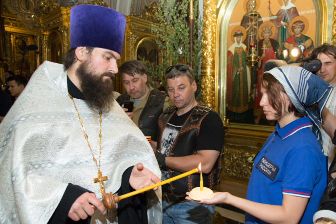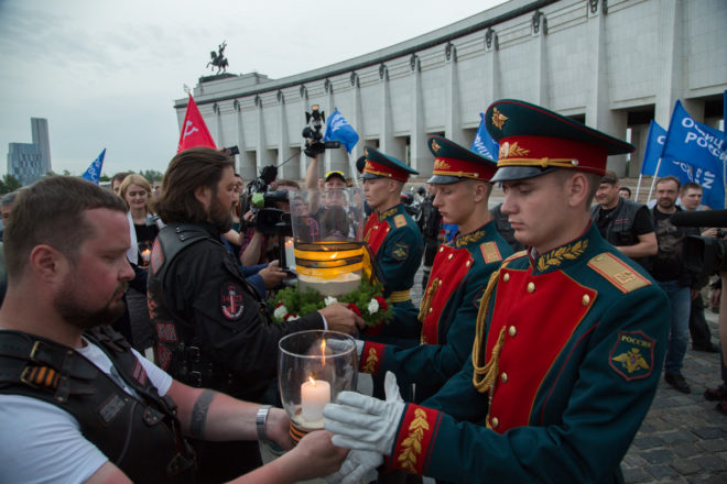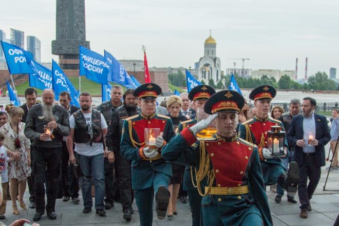 21 июня состоялся авто- и мотомарш памяти защитников Москвы «Дороги Победы. Свеча памяти», посвященный 75-летию начала Великой Отечественной войны. Старт акции был дан в Елоховском Богоявленском соборе, где прошла панихида, приуроченная ко Дню памяти и скорби. Здесь же была торжественно зажжена свеча памяти и передана в руки мотоциклистов из байкерского клуба «Ночные волки» и представителей общественных организаций, которые провезли ее по рубежам обороны Москвы.