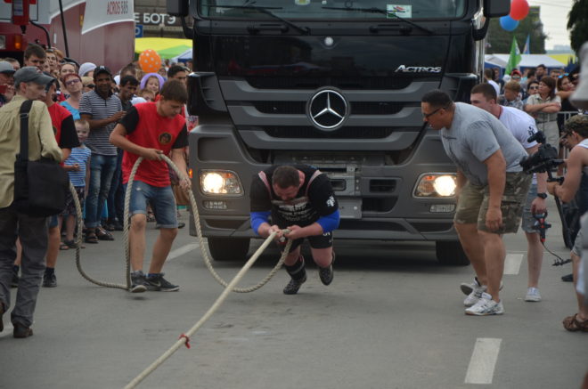 15 атлетов со всей России соревновались в упражнениях «Бревно», «Тяга автомобиля», «Кантовка покрышки», «Буксировка грузовика». По итогам напряженной борьбы победителем признан Евгений Марков (Омск), второе место досталось Сергею Харламову (Пермь), третье – Валерию Савину (Челябинск), четвертым стал Сергей Фарафонтьев (Новосибирск).