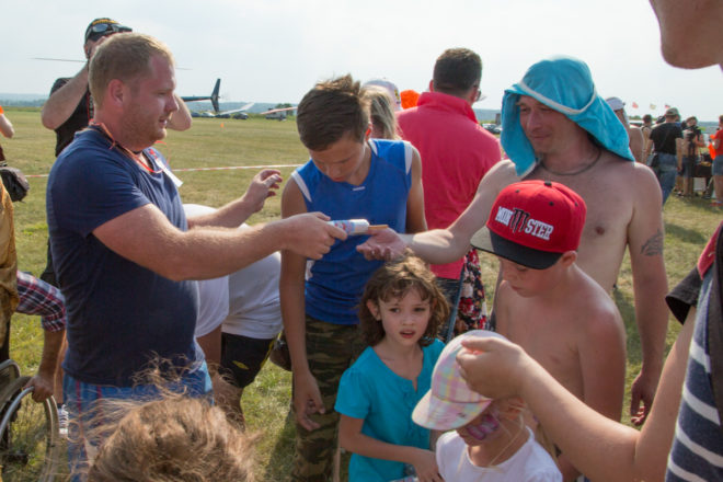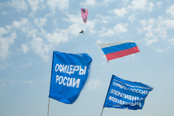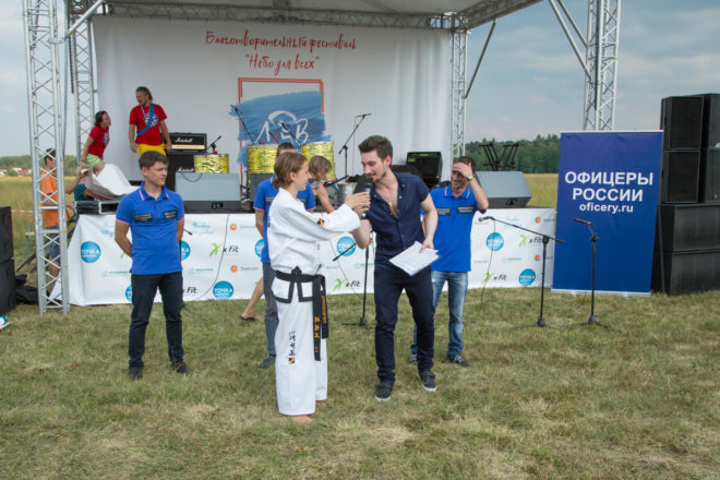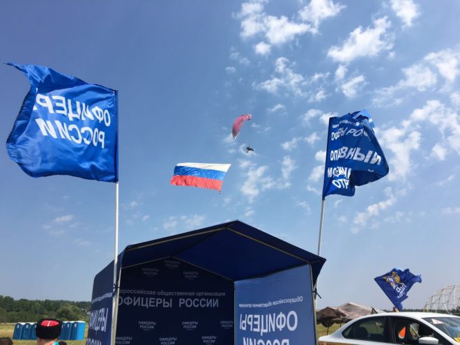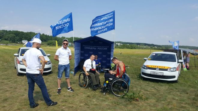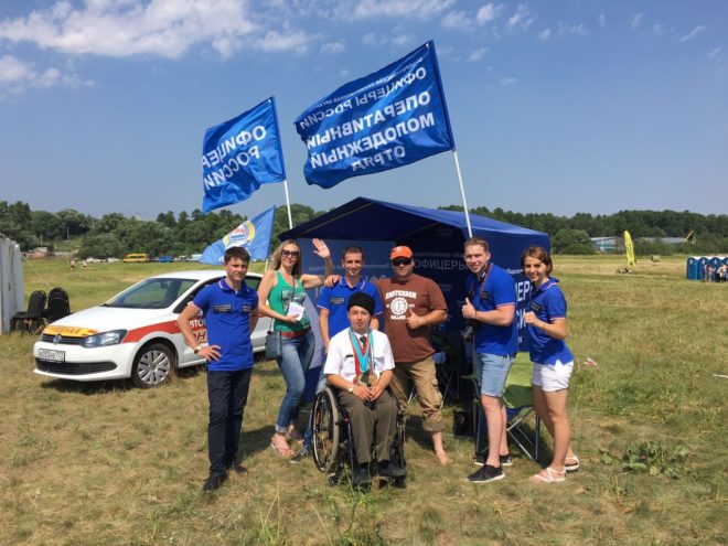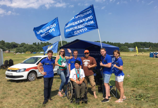 «ОФИЦЕРОВ РОССИИ» на празднике воздухоплавания представляли заместитель руководителя Центрального Исполкома Валерий Степанов, а также инспекторы Оперативного молодежного отряда – двукратная чемпионка мира по тхэквондо Светлана Метегина, инвалид-колясочник Степан Полянский и другие члены организации.