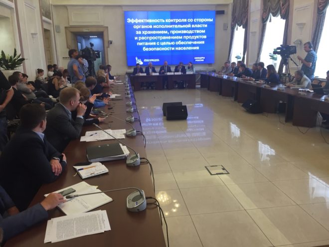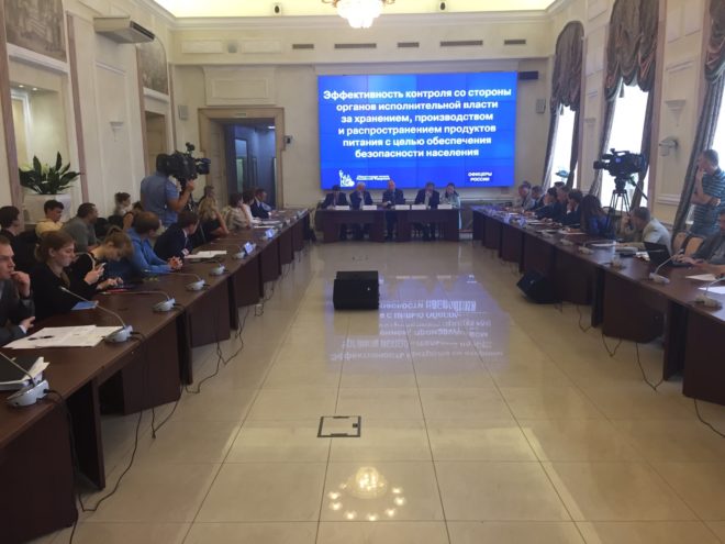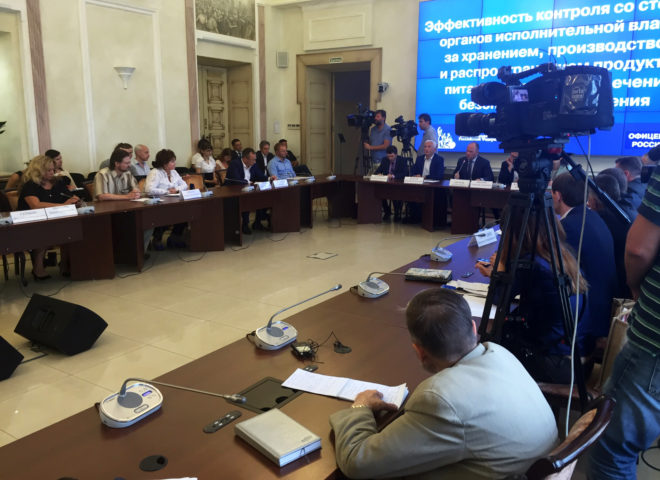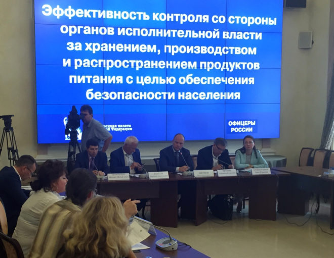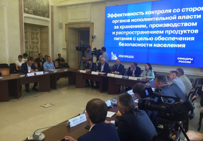 21 июля в Общественной палате РФ состоялся круглый стол «Эффективность контроля со стороны органов исполнительной власти за хранением, производством и распространением продуктов питания с целью обеспечения безопасности населения». Поводом для обсуждения стала скандальная ситуация вокруг нелегальной торгово-складской базы в столичном районе Вешняки, которую в рамках общественного контроля выявил Центр профилактики правонарушений «ОФИЦЕРОВ РОССИИ». Были продемонстрированы и видеоролики с рейдов по пресечению деятельности этой базы.