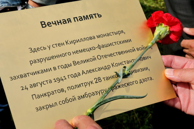 Первый в истории Великой Отечественной войны подвиг самопожертвования в августе 1941-го в боях за Новгород совершил Александр Панкратов, который закрыл своим телом вражеский пулемет, тем самым спас много человеческих жизней и обеспечил продвижение советских войск. В этом году исполняется 75 лет со дня подвига Героя Советского Союза Александра Панкратова.