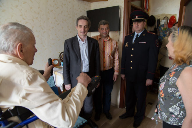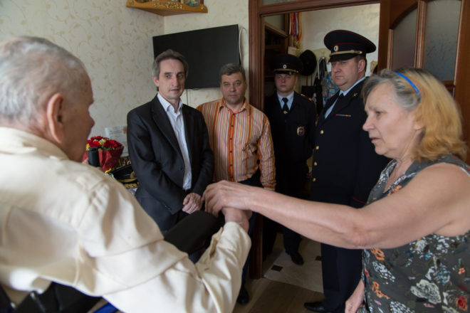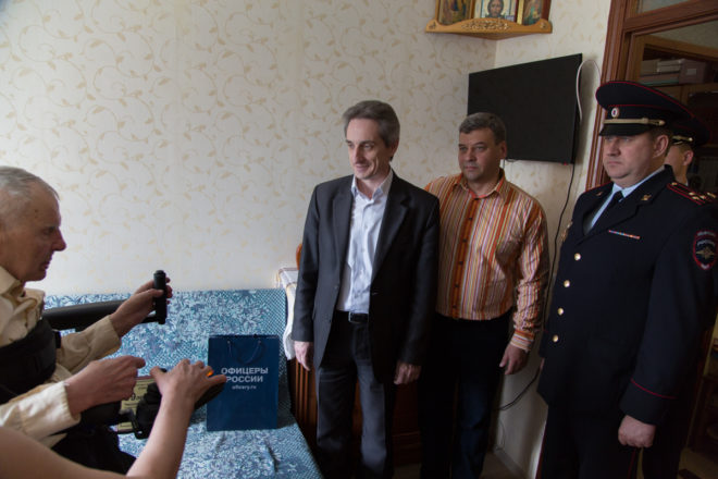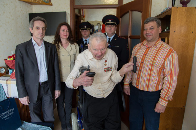 Поздравить героя-фронтовика с днем рождения пришли руководитель Центра социальной и правовой защиты «ОФИЦЕРОВ РОССИИ» Сергей Ермоленко, заместитель руководителя Центрального исполкома Валерий Степанов, а также сотрудники отдела полиции и управы района Тропарево-Никулино.