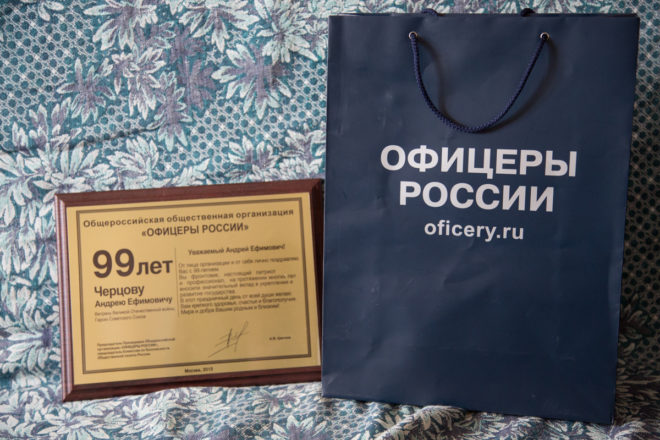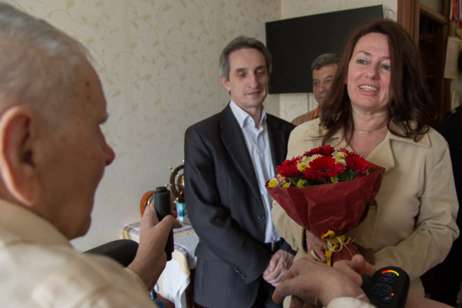 К сожалению, герой-фронтовик сильно болеет, и ему как никогда нужна моральная поддержка. Гости пожелали Андрею Ефимовичу здоровья и долгих лет жизни, а также вручили подарки и цветы.