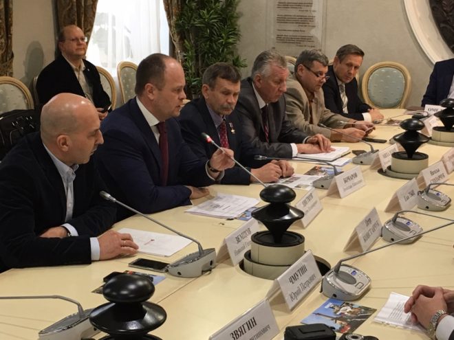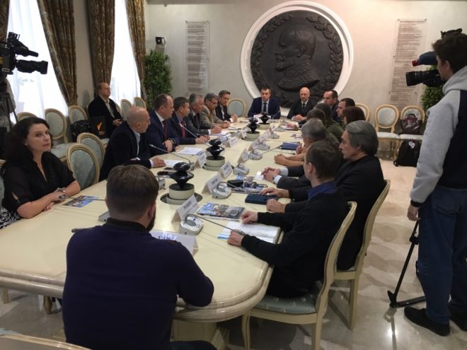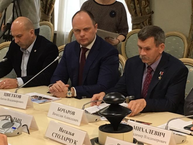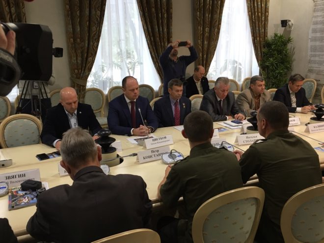 Круглый стол был посвящен деятельности военно-патриотических сообществ по сохранению истории, противодействию фальсификации истории, восстановлению памятников героям Второй мировой войны.