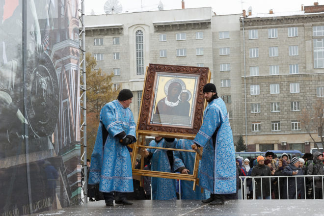По инициативе регионального отделения «ОФИЦЕРОВ РОССИИ» в Новосибирской области, поддержанной общественными организациями города, 4 ноября на главной площади Новосибирска прошли праздничные мероприятия, посвященные Дню народного единства и православному празднику Казанской иконы Божией Матери. В рамках праздника состоялся молебен перед чудотворной иконой Божией Матери «Казанская».