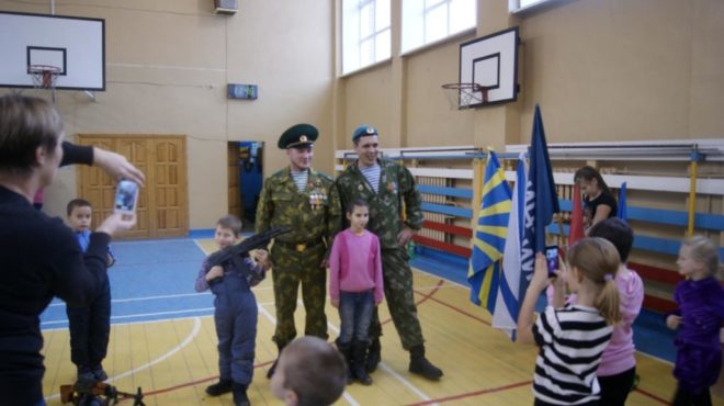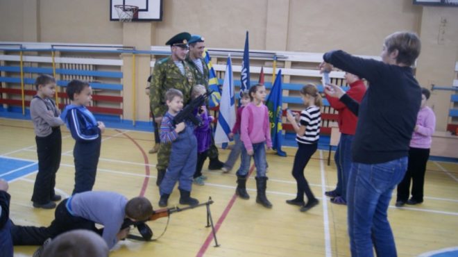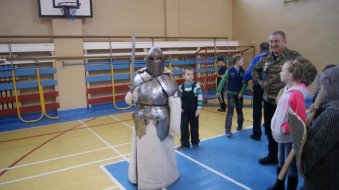 Активисты организации рассказали школьникам о различных родах войск и службе в Погранвойсках, ВДВ, мотострелковых соединениях и подразделениях спецсвязи. Они также продемонстрировали ребятам рыцарские доспехи и оружие Российской армии.
