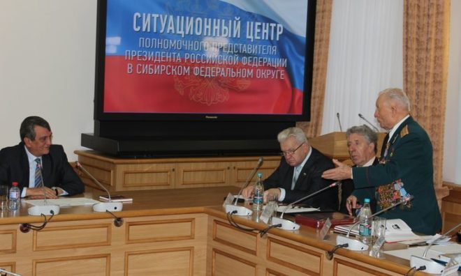 7 ноября полномочный представитель Президента РФ в Сибирском федеральном округе Сергей Меняйло провел рабочую встречу с руководителями всероссийских, межрегиональных и региональных ветеранских общественных организаций Новосибирской области и Героями Советского Союза.