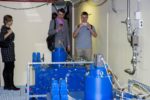 В ходе экскурсии Андрей Проничев рассказал молодым инженерам об основных этапах реконструкции Большого театра, в результате которой под землей было построено здание со всеми технологическими помещениями, сопоставимое по размерам с основным зданием на поверхности – для этого исторические стены на время проведения работ были приподняты на сваях. «Система перераспределения технологической нагрузки позволила сделать историческую сцену Большого театра одной из наиболее технически совершенных среди всех реконструированных сцен мира», – сказал он, добавив, что реконструкция сценического пространства и вспомогательных внутренних помещений проведена с использованием последних технических достижений в области театральных технологий.