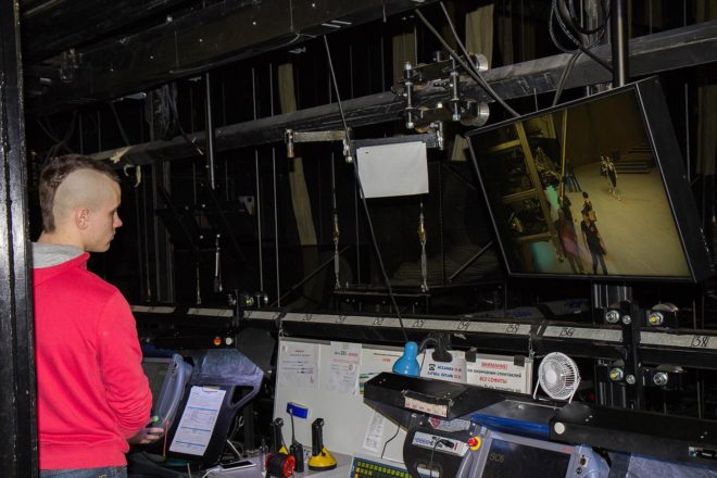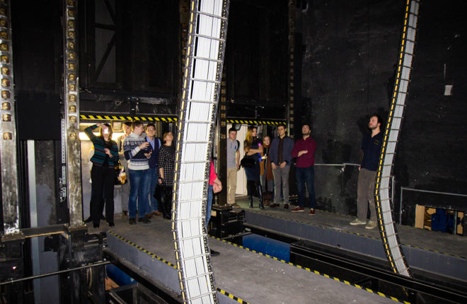 Эксклюзивную экскурсию для ознакомления с техническим комплексом Большого театра для участников Международного фестиваля детского и молодежного творчества «От винта!» провел заместитель генерального директора театра, заслуженный работник культуры РФ Андрей Проничев. Молодые инженеры, которые сегодня обучаются в ведущих технических вузах России – МГТУ им. Н.Э. Баумана, МАИ, МИФИ – познакомились с уникальным, сложнейшим техническим комплексом главного театра страны, благодаря которому постановки Большого театра по праву считаются лучшими в России. Ребята побывали в трюме сцены, рабочих галереях, на колосниках – в самом сердце Большого театра, помещениях, куда нет доступа обычным посетителям экскурсий. С этой сферой деятельности Большого театра знаком лишь небольшой круг российских и зарубежных технических специалистов.
