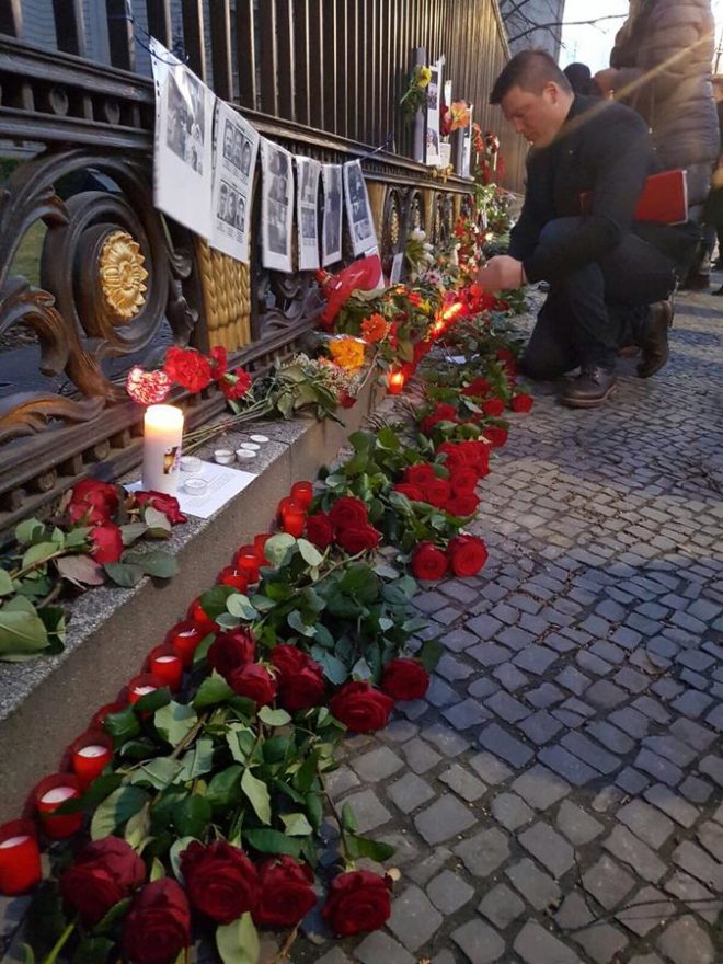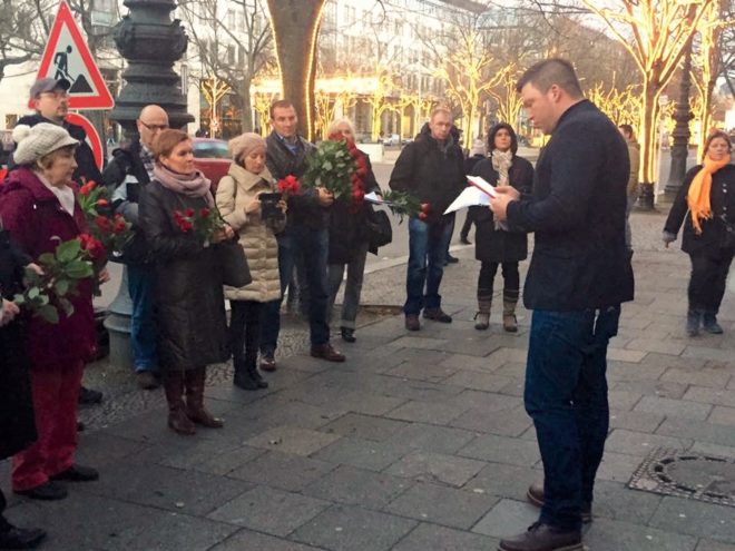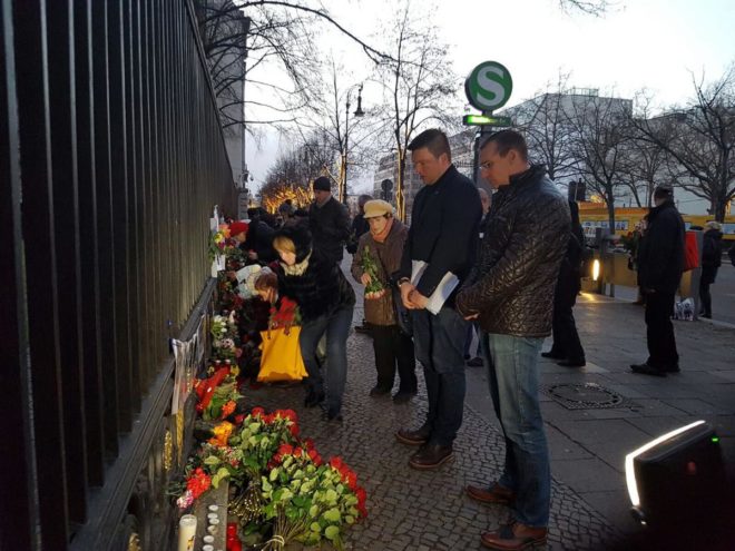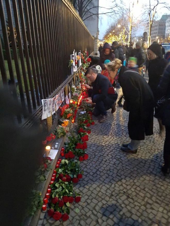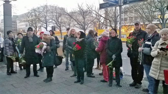 27 декабря в Берлине у посольства России в Германии прошла акция в память о жертвах крушения Ту-154 под Сочи, в которой погибли 92 человека.