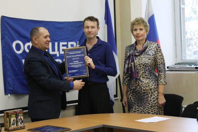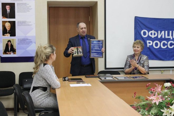 В ходе пресс-конференции активисты регионального отделения «ОФИЦЕРОВ РОССИИ» в Иркутской области вручили почетную грамоту и благодарности представителям фонда за личный вклад в патриотическое воспитание граждан и возрождение лучших исторических традиций.