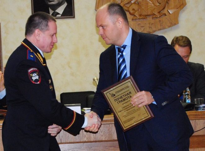 Антон Цветков также вручил почетные грамоты начальнику столичного ГАИ Виктору Коваленко и ряду офицеров за обеспечение порядка и предотвращение правонарушений в 2016 году.