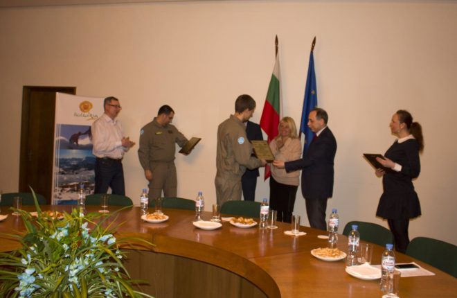 Посол Республики Болгария Бойко Коцев и руководитель фестиваля «От винта!», председатель Комиссии по развитию детского и молодежного научно-технического творчества при Минпромторге России, член Президиума «ОФИЦЕРОВ РОССИИ» Виктория Соболева вручили награды участникам фестиваля в посольстве Болгарии. Специальных дипломов удостоены выпускники Московского авиационного института Недислав Веселинов и Владислав Шишкин, а также преподаватель МАИ Алексей Сычев за российско-болгарский научный проект «Полет летательных аппаратов в атмосферах планет солнечной системы», ставший победителем фестиваля на авиакосмическом салоне «МАКС».