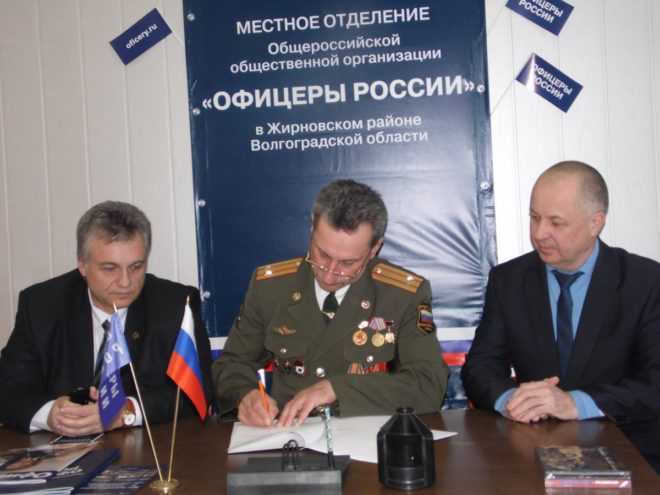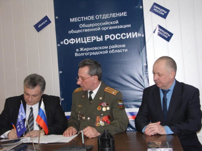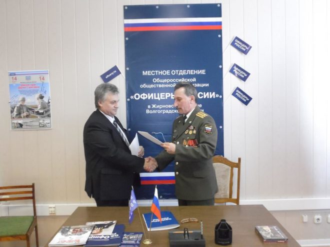 «ОФИЦЕРЫ РОССИИ» в Волгоградской области (Жирновское отделение) подписали соглашение о взаимодействии и сотрудничестве с Жирновской автошколой ДОСААФ России. Свои подписи под документом поставили председатель президиума Жирновского отделения Василий Малолетенко и начальник автошколы Александр Борщ. Они также согласовали план совместной работы по военно-патриотическому воспитанию подрастающего поколения.