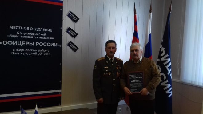 Кроме того, от регионального отделения «ОФИЦЕРОВ РОССИИ» в Волгоградской области Василий Малолетенко вручил журналисту Михаилу Сафронову благодарность за активное участие в патриотическом мероприятии, посвященном Дню Героев Отечества.