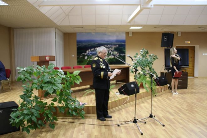 Руководитель исполкома местного отделения «ОФИЦЕРОВ РОССИИ» в г. Радужный Николай Косовнин зачитал клятву гражданина города, которую повторили школьники.