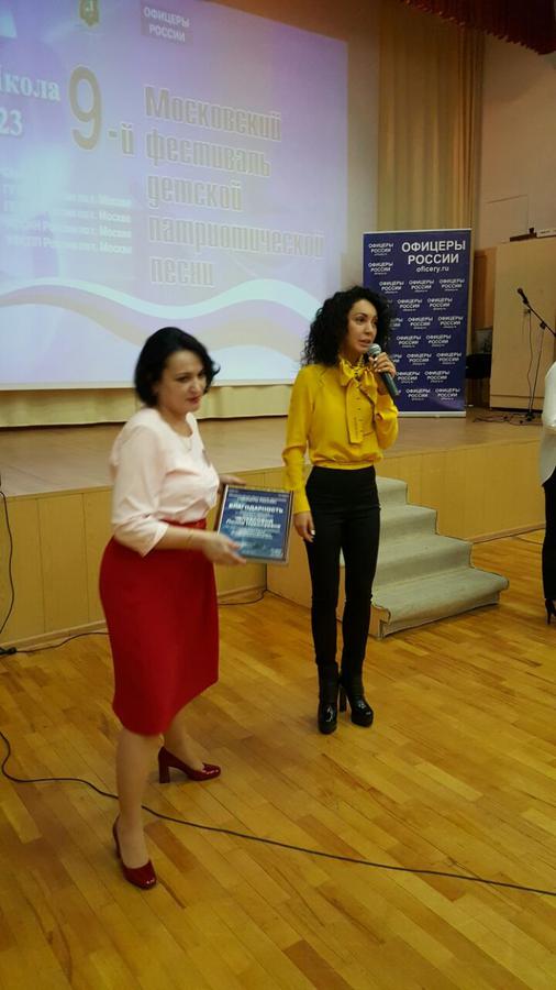 «ОФИЦЕРЫ РОССИИ» выражают благодарность директору ГБОУ «Школа №1623» Екатерине Юшковой и заместителю директора по воспитанию и социализации Лилии Чепрасовой за помощь в организации и проведении отборочного тура.