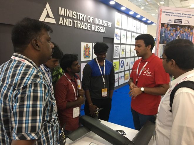 Участники Международного фестиваля детского и молодежного научно-технического творчества «От винта!» – студенты МАИ, МГТУ им. Н.Э. Баумана и Московского политехнического университета – представили свои разработки на стенде Минпромторга РФ в рамках российской экспозиции на Международной выставке высокотехнологичной продукции IESS-2017 в Индии. Напомним, организатором фестиваля «От винта!», направленного на развитие инженерных талантов нового поколения, выступает Министерство промышленности и торговли РФ, соорганизаторами – Координационный совет по развитию детского и молодежного научно-технического творчества Союза машиностроителей России и Общероссийская организация «ОФИЦЕРЫ РОССИИ».