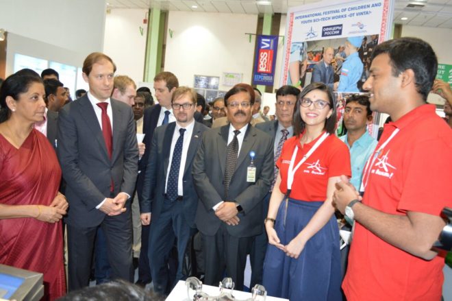 Как рассказала руководитель фестиваля «От винта!», член Президиума «ОФИЦЕРОВ РОССИИ» Виктория Соболева, министры России и Индии с интересом общались с ребятами, выразив восхищение их инженерными талантами. Индийский министр Нирмала Ситхараман задавала много вопросов о фестивале, отметив его бесспорную значимость и выразив заинтересованность в сотрудничестве с фестивальным движением «От винта!», в частности, участии в нем индийских юных инженеров. Российские организаторы фестиваля пригласили студентов и школьников из Индии, разработки которых также экспонировались на выставке, представить свои работы в России – на МАКСе, Heliorussia и других важнейших промышленных выставках. Отметим, что стенд фестиваля «От винта!» пользовался большим вниманием на протяжении всех дней выставки. Среди посетителей стенда было много студентов и школьников, наиболее близко молодые инженеры из России подружились со студентами Hindustan University.