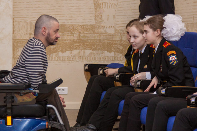 Встреча получилась душевной, по-домашнему теплой. Евгений Смирнов поделился личным опытом реабилитации и ресоциализации после ДТП, которое произошло четыре года назад и лишило его одной ноги. Он рассказал, как изменились его возможности, о своем проекте создания инклюзивной студии танцев, где могут заниматься как здоровые дети, так и ребята с ограниченными возможностями здоровья.
