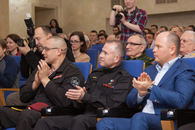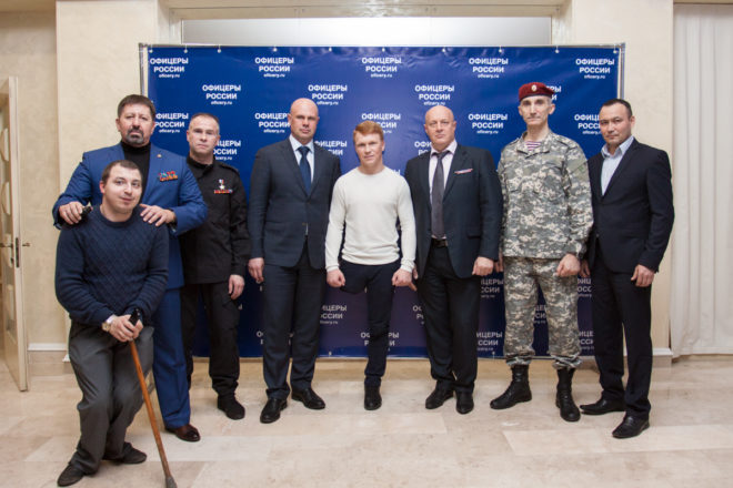 На встрече присутствовали: руководитель Центрального Исполкома «ОФИЦЕРОВ РОССИИ» генерал-лейтенант полиции Александр Михайлов; первый заместитель руководителя Центрального Исполкома действительный государственный советник юстиции 2 класса Михаил Контарев; член Совета мужества и отваги «ОФИЦЕРОВ РОССИИ», Герой России полковник Александр Головашкин; заместитель председателя Совета мужества и отваги майор Юрий Хожайнов; начальник ОСН «Сатурн» УФСИН России по г. Москве, член Президиума «ОФИЦЕРОВ РОССИИ» полковник Борис Николаев; трехкратный чемпион мира по армрестлингу Степан Полянский; организатор движения САМИ (Сильные активные молодые инвалиды) Виктор Счастливый, а также члены президиума регионального отделения «ОФИЦЕРОВ РОССИИ» Москвы, воспитанницы Кадетской школы-интерната №9, сотрудники силовых ведомств и просто неравнодушные люди, которые пришли поддержать Евгения Смирнова.