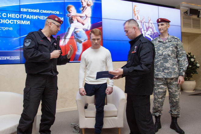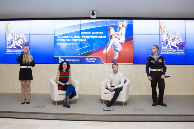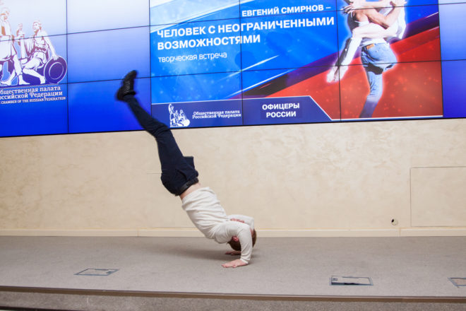 16 марта в Общественной палате РФ состоялась творческая встреча с человеком непростой судьбы и огромной внутренней силы, танцором с ограниченными возможностями здоровья, известным участником шоу «Танцы на ТНТ» и проекта «Минута славы» Евгением Смирновым.