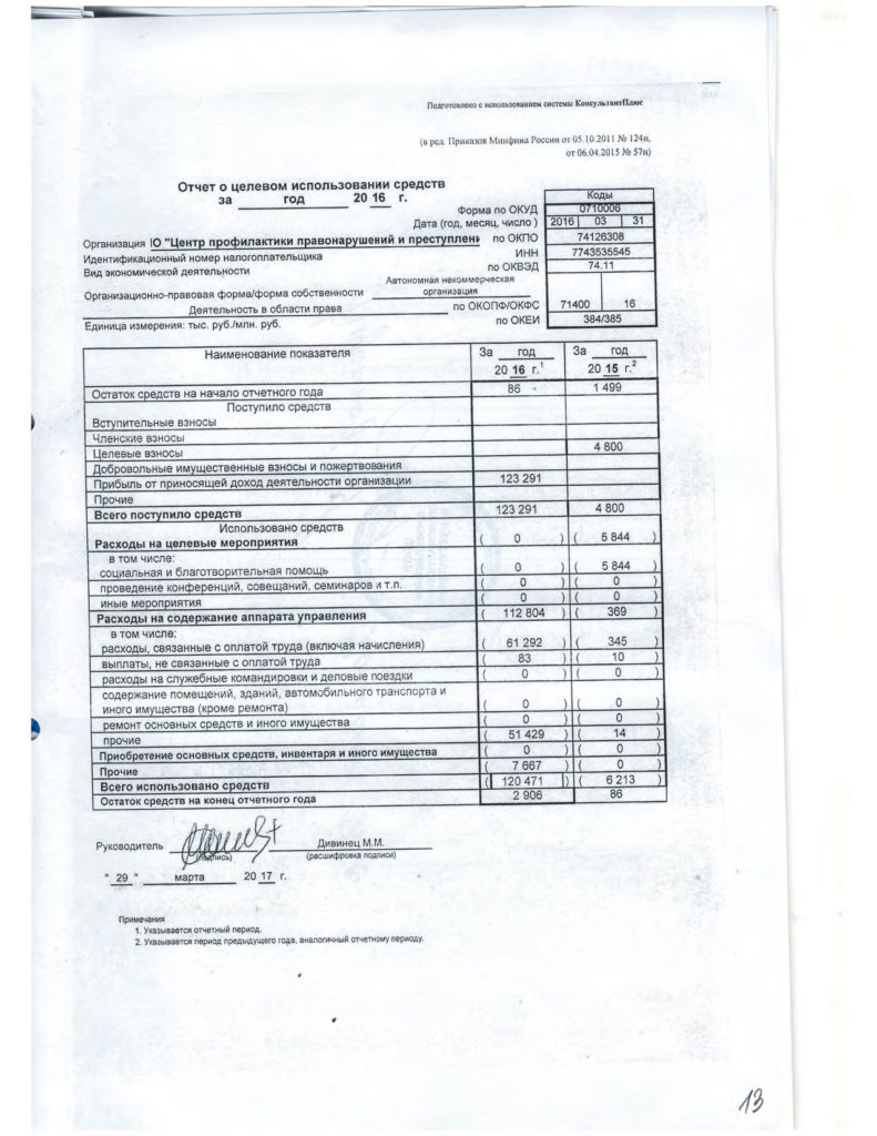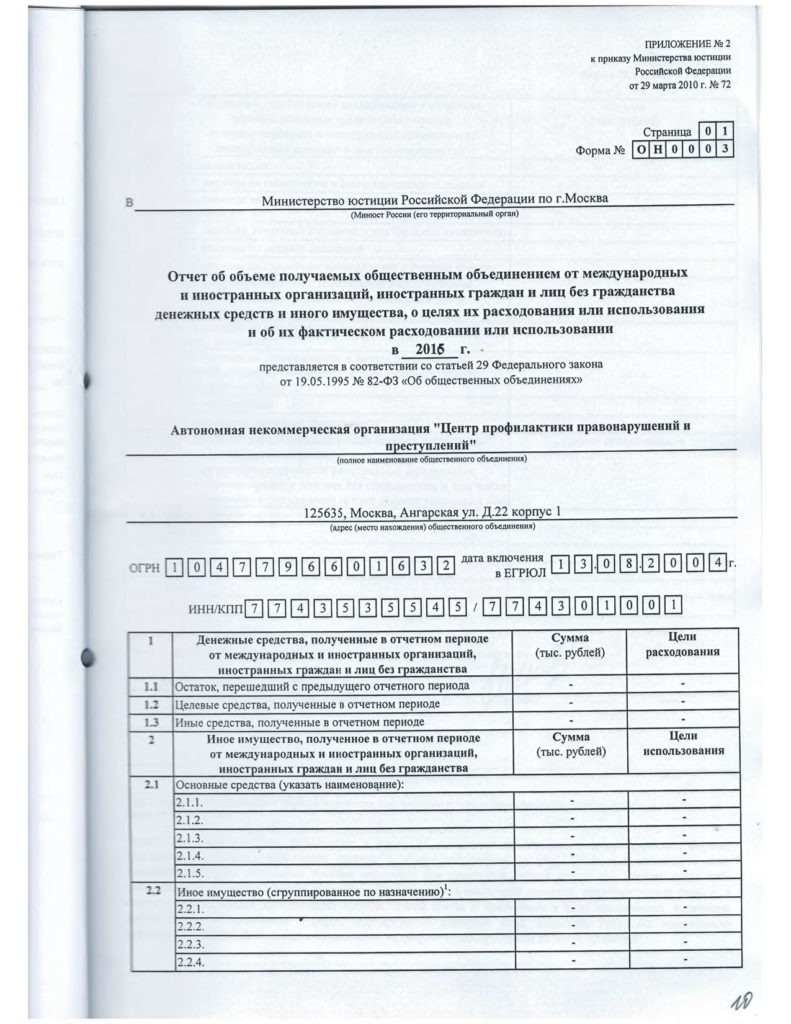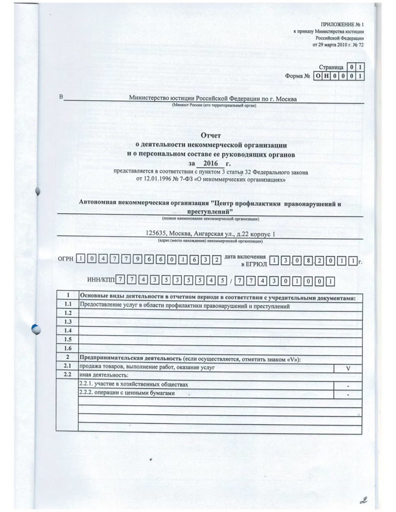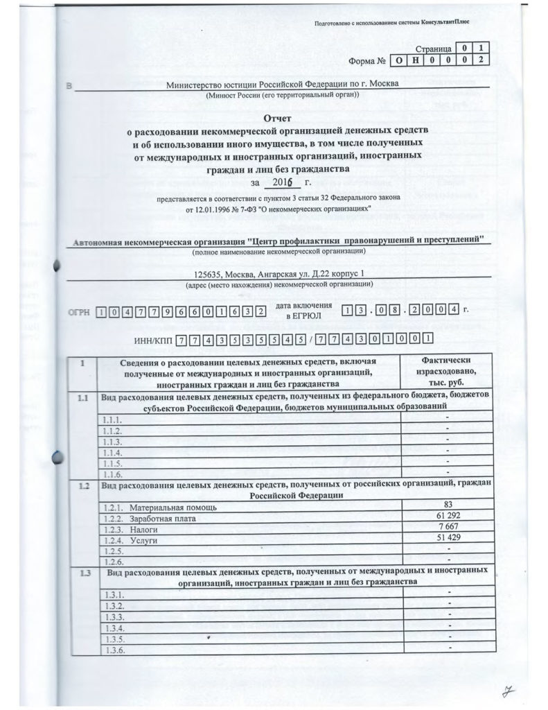 Автономная некоммерческая организация «Центр профилактики правонарушений и преступлений» публикует отчет о деятельности некоммерческой организации и о персональном составе ее руководящих органов за 2016 год.