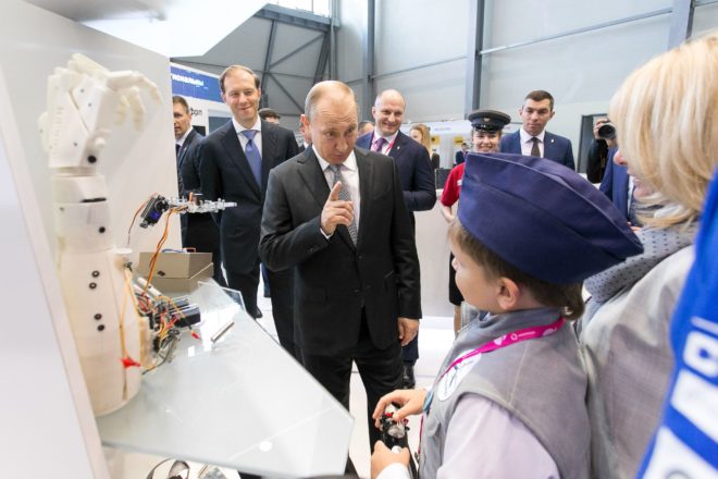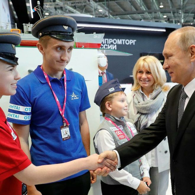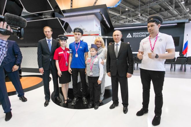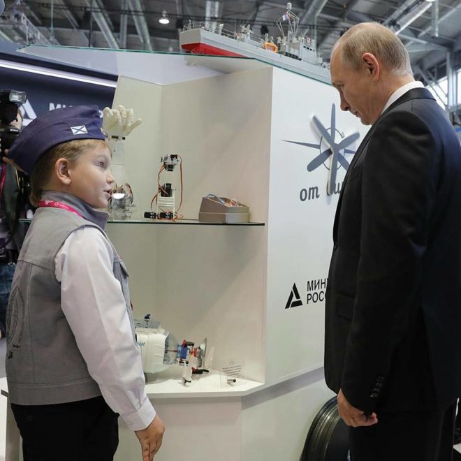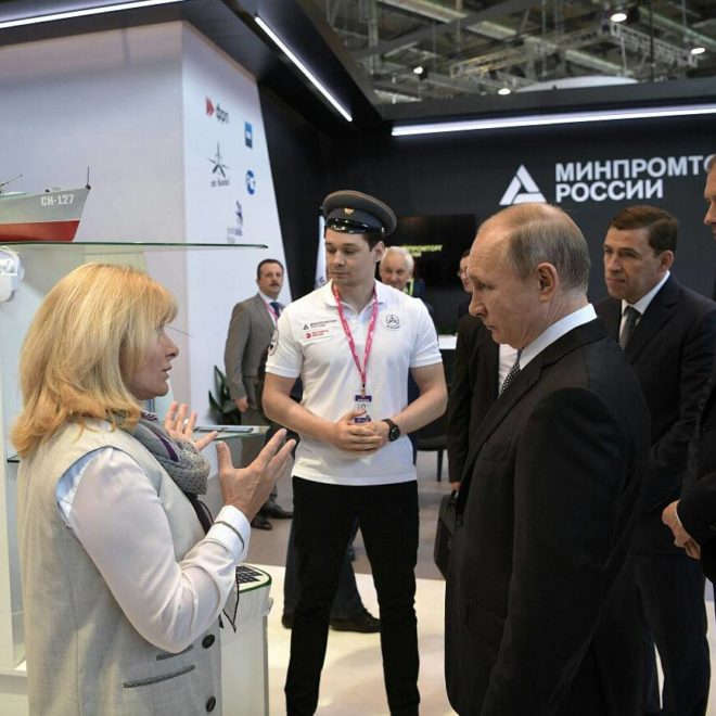 Промышленную выставку в Екатеринбурге посетил президент России Владимир Путин. Глава государства ознакомился не только с передовыми разработками и образцами продукций, но и с экспозицией Международного фестиваля детского и молодежного научно-технического творчества «От винта!» Юные инженеры продемонстрировали президенту свои изобретения. Путину показали роботов, сконструированных ребятами, например, дрона-уборщика и робота-саламандру. Участники проекта сделали президенту подарок – развивающий конструктор, который попросили передать внукам. Эта познавательная игра позволяет ставить эксперименты с радиоэлементами, гласила надпись на коробке. Один из юных изобретателей лично представил президенту робота для изучения подводного дна. Президент России в очередной раз высоко оценил проекты талантливых детей.