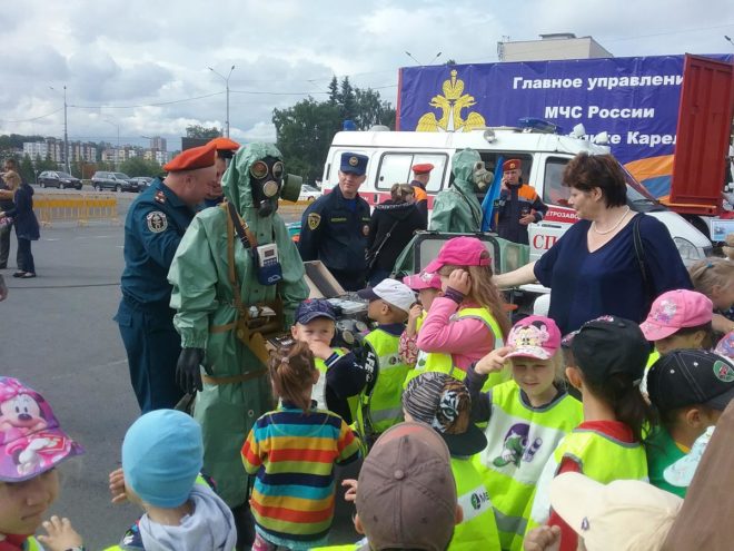 На площади Кирова была представлена группировка в составе 80 человек личного состава и 19 единиц техники, развернуты элементы подвижного пункта управления ГУ МЧС России по Республике Карелия.