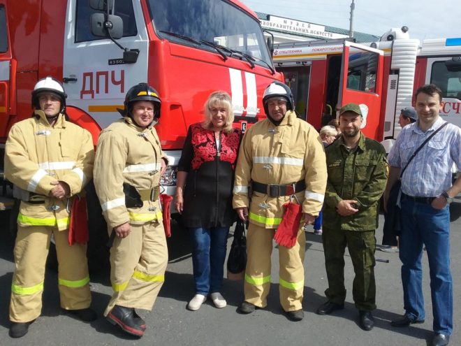 На выставочной площадке гости праздника, среди которых было много детей, могли примерить на себя боевую одежду пожарного, пройти пелену дыма в «дым-палатке», и подкрепить свои силы кашей из полевой кухни.