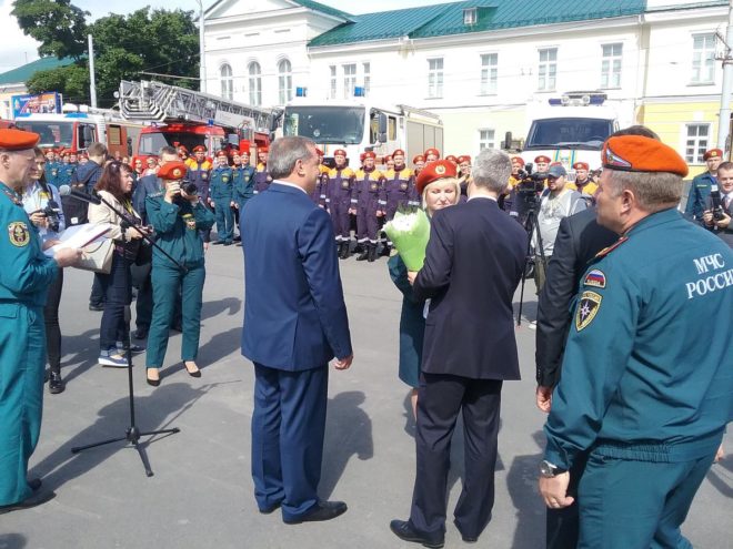 Владимир Пучков пообщался с личным составом пожарно-спасательного гарнизона, наградил наиболее отличившихся сотрудников ведомственными медалями и передал спасателям специальную технику – снегоболотоходы и квадрокоптеры.
