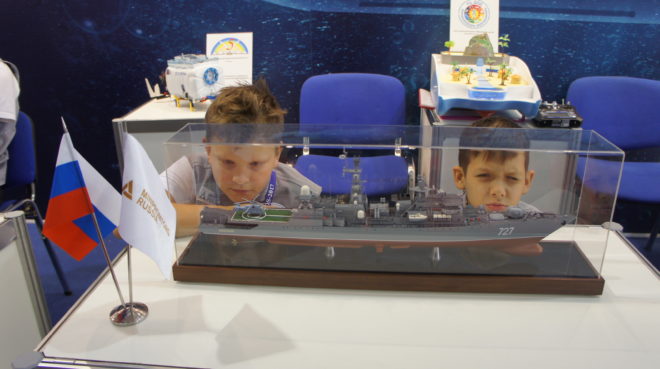 Впервые на Международном военно-морском салоне свои изобретения представили юные участники фестиваля «От винта!» Организатором детского фестиваля выступает Министерство промышленности и торговли РФ, соорганизаторами – Координационный совет по развитию детского и молодежного научно-технического творчества Союза машиностроителей России и Общероссийская организация «ОФИЦЕРЫ РОССИИ».