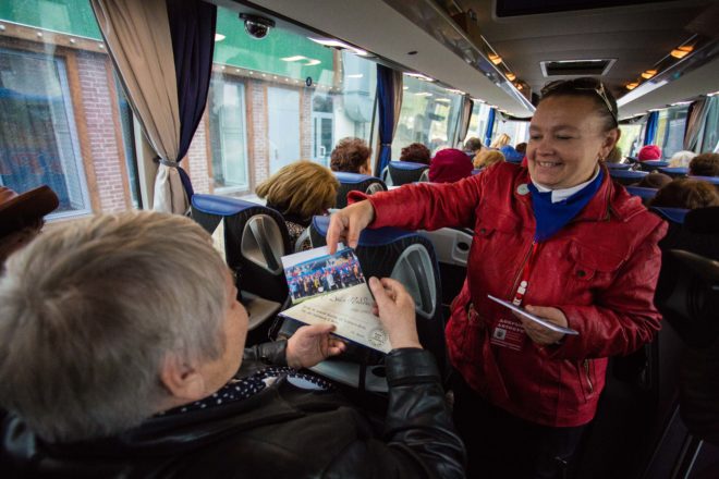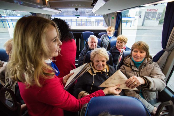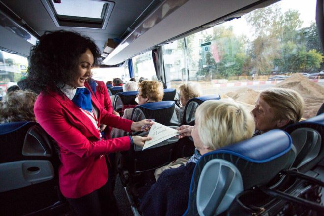 Сопровождающие члены команды «Доброго автобуса» сделали все, чтобы путешествие для пожилых пассажиров было максимально комфортным и запоминающимся.
