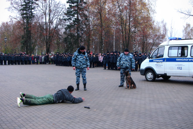 Гостям и курсантам были продемонстрированы практические навыки специалистов-кинологов и сотрудников спецподразделений.