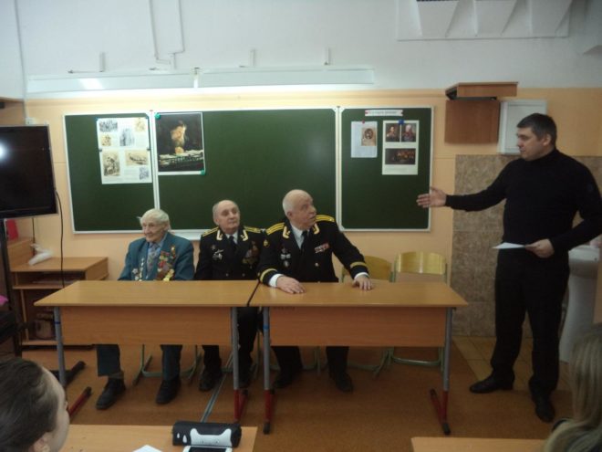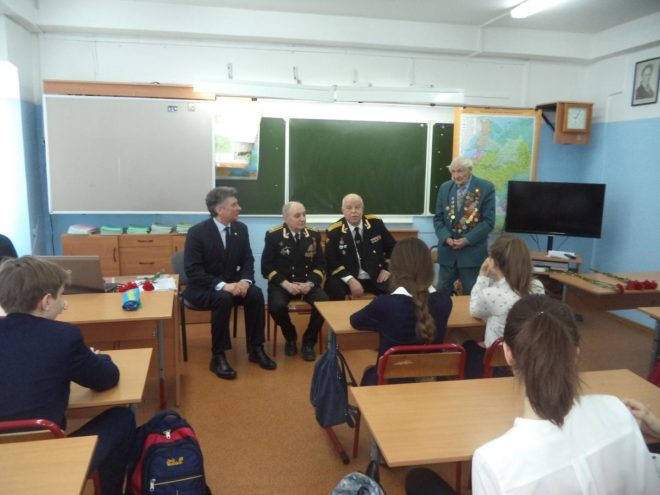 На уроки были приглашены ветеран Великой Отечественной войны, участник обороны Ленинграда Евгений Федосеев и ветераны ВМФ – командир атомной подводной лодки «Ленинский комсомол» Анатолий Ритворов и председатель комиссии по патриотическому воспитанию Московского комитета ветеранов войны Юрий Лебедев. Гости рассказали школьникам о мужестве и героизме советских воинов в годы войны, генерале армии В.Ф. Маргелове, службе в ВМФ и ВДФ, призвали их чтить память героев, помнить историю страны, быть настоящими патриотами своей Родины.