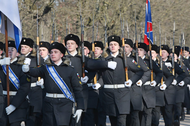 В День защитника Отечества в Калининграде состоялась торжественная церемония возложения венков и цветов к мемориальному комплексу 1200 воинам-гвардейцам.