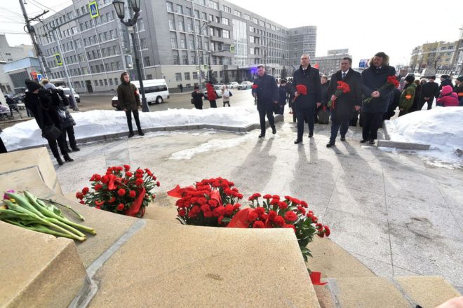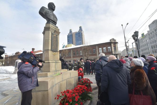 Отдать дань памяти прославленному земляку пришли руководители Новосибирской области и Новосибирска, представители ветеранских общественных организаций, кадеты, молодежь, жители города.