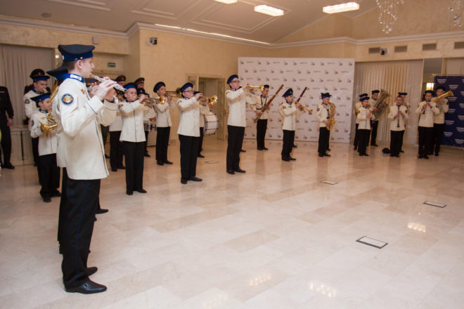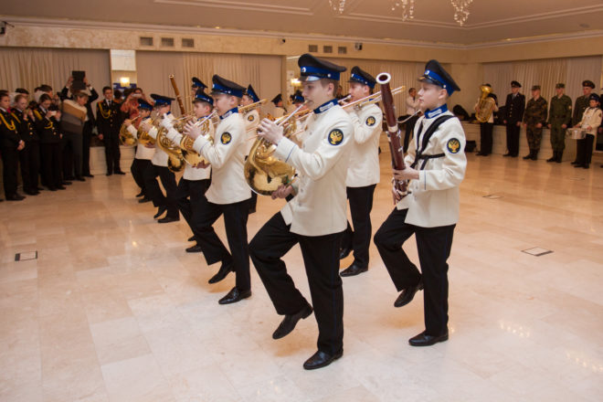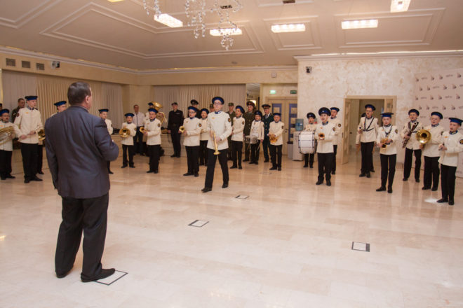 Своеобразным подарком для зрителей стало выступление кадетов Музыкального кадетского корпуса им. А.В. Александрова, которые перед началом гала-концерта исполнили композицию «Оркестровое дефиле».