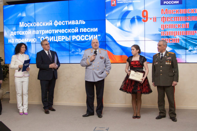 13 апреля в Общественной палате РФ состоялся гала-концерт 9-го Московского фестиваля детской патриотической песни на премию «ОФИЦЕРЫ РОССИИ». Фестиваль был посвящен 72-й годовщине Победы в Великой Отечественной войне.